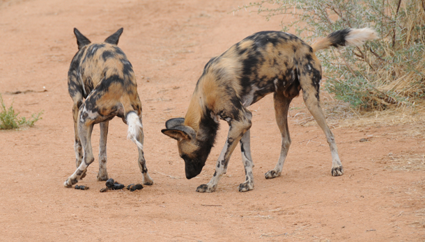 Der Afrikanische Wildhund ist vom Aussterben bedroht, Weltweit leben in freier Wildbahn wohl noch 5000 Tiere. In Namibia werden maximal 600 vermutet. Der Wildhund ist ein Ausdauerjäger, der seine Beute im Rudel bis zur Erschöpfung jagd, befor er sie erbeutet.