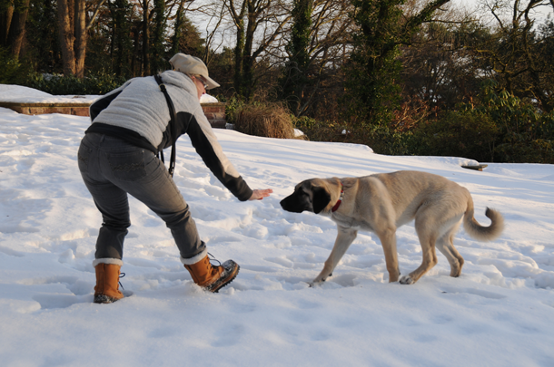 Das „Platz“-Kommando ist gut geeignet für Begegnungen mit Joggern oder Radfahrern. Diese sind immer sehr dankbar, wenn ein so großer Hund gut gehorcht und nicht so bedrohlich wirkt.