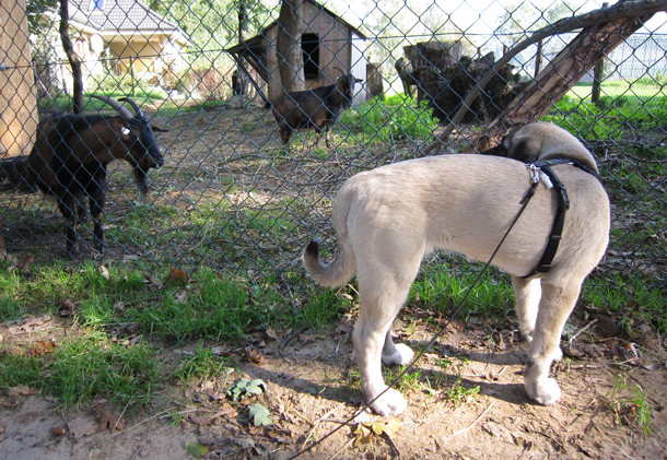 Sirin darf gelassen die Schafe beobachten, 5 Monate alt, 2010