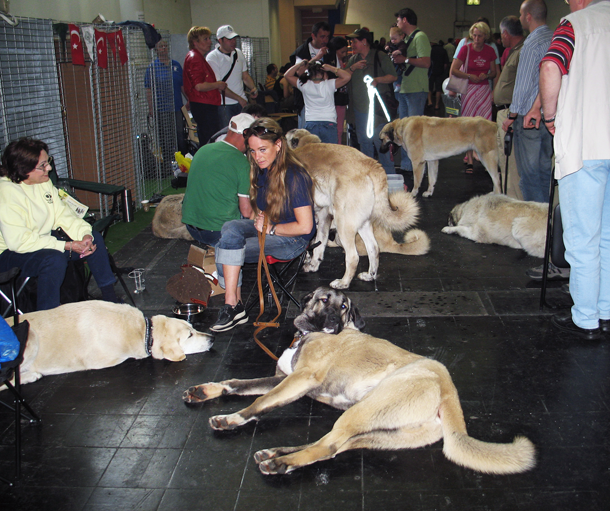 Meine erste Hundeausstellung besuchte ich im Jahre 1995 mit meinem Amerikanisch Canadischen weißen Schäferhund Flint. Da diese Rasse damals keine VDH anerkannte Rasse war, waren das dann natürlich auch keine VDH oder FCI Ausstellungen, sondern IRV und andere spezial Schauen für ACwSchäferhunde. Etwas später habe ich dann auch Elisabeth auf Internationale VDH FCI Ausstellungen begleitet. Am 20. und 21. Oktober 2000 habe ich dann zur Bundessieger-Millennium-Zuchtschau in Dortmund meinen eigenen Kangal Rüden Tarak zum ersten mal ausgestellt. Leider als Anatolischer Hirtenhund…….
