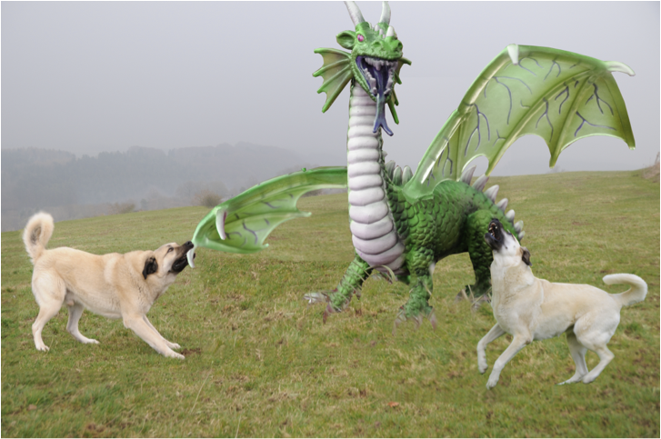 Der Drache war sehr überrascht, als er von zwei fürchterlichen Kangals angegriffen wurde. Er war bezwungen und rettete sein Leben durch eine kopflose Flucht. Er flog in ein weit entferntes Land, in dem es keine Kangal Hunde gibt. Sayid und Ayla waren sehr stolz auf sich.